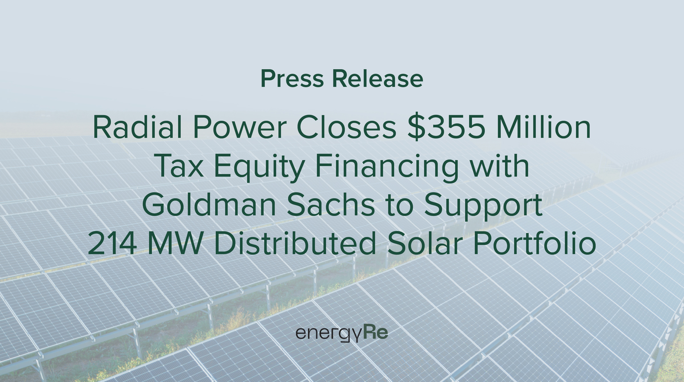 Radial Power Closes $355 Million Tax Equity and Debt Financing with Goldman Sachs to Support 214 MW Distributed Solar Portfolio